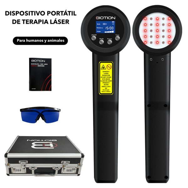 - Accesorios: maletín metálico portátil, pilas y cargador, dos gafas protectoras, y manual de uso.